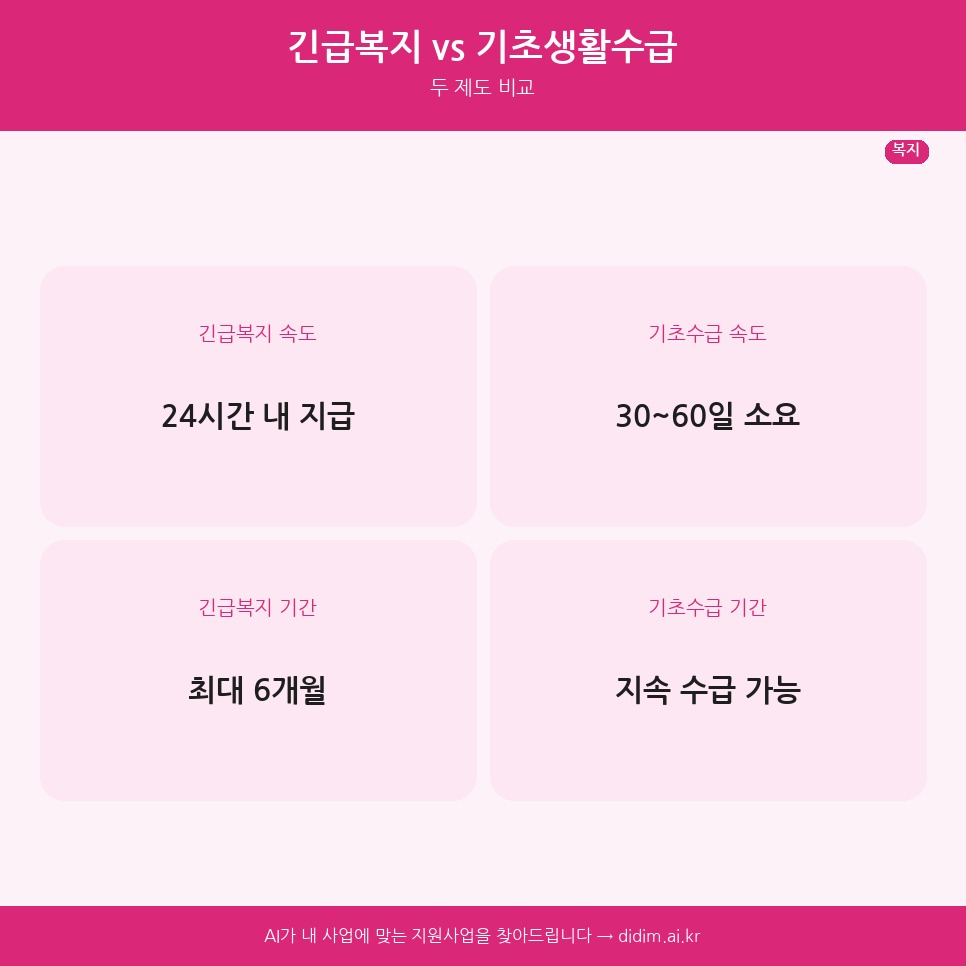 | 항목 | 긴급복지 | 기초생활수급 |