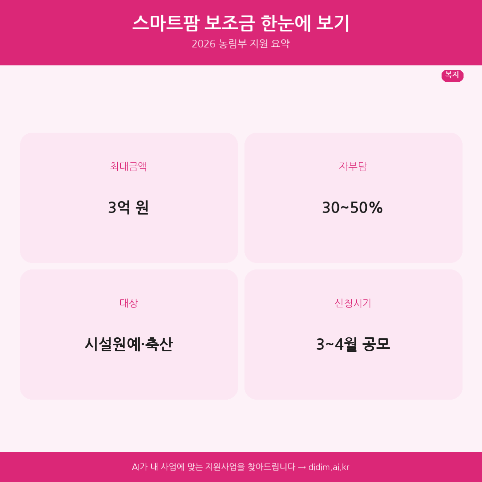 한눈에 보기: 2026년 농업 스마트팜 보조금