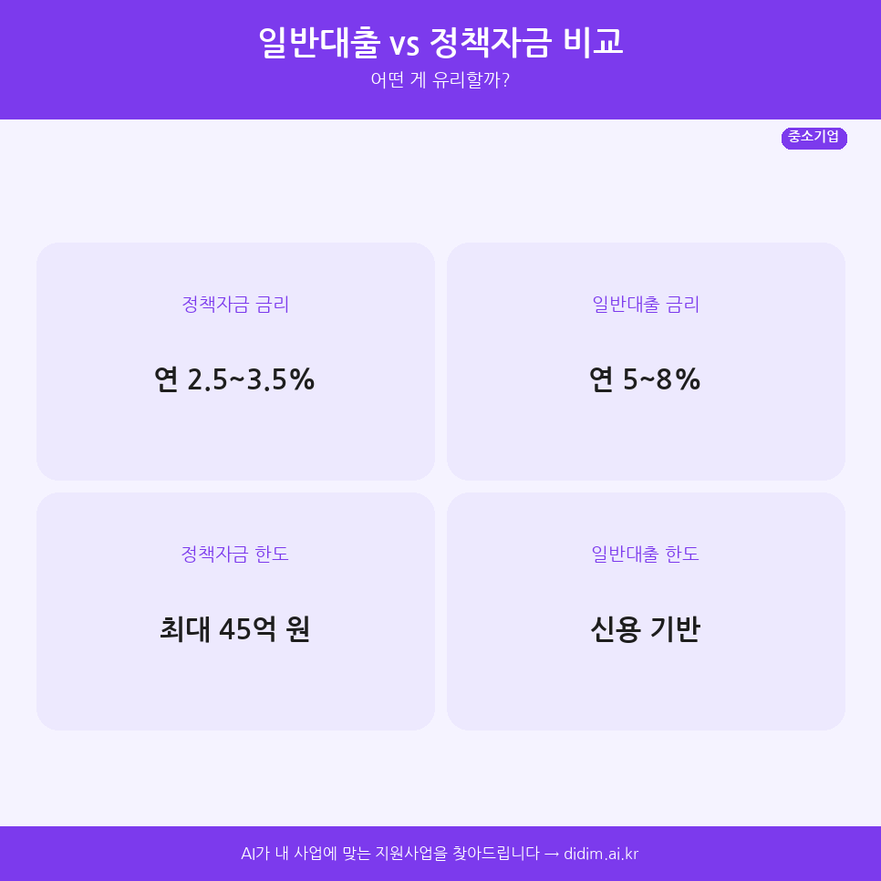 - 정책자금 대출은 금리가 일반 대출의 절반 수준 (2~3%대)