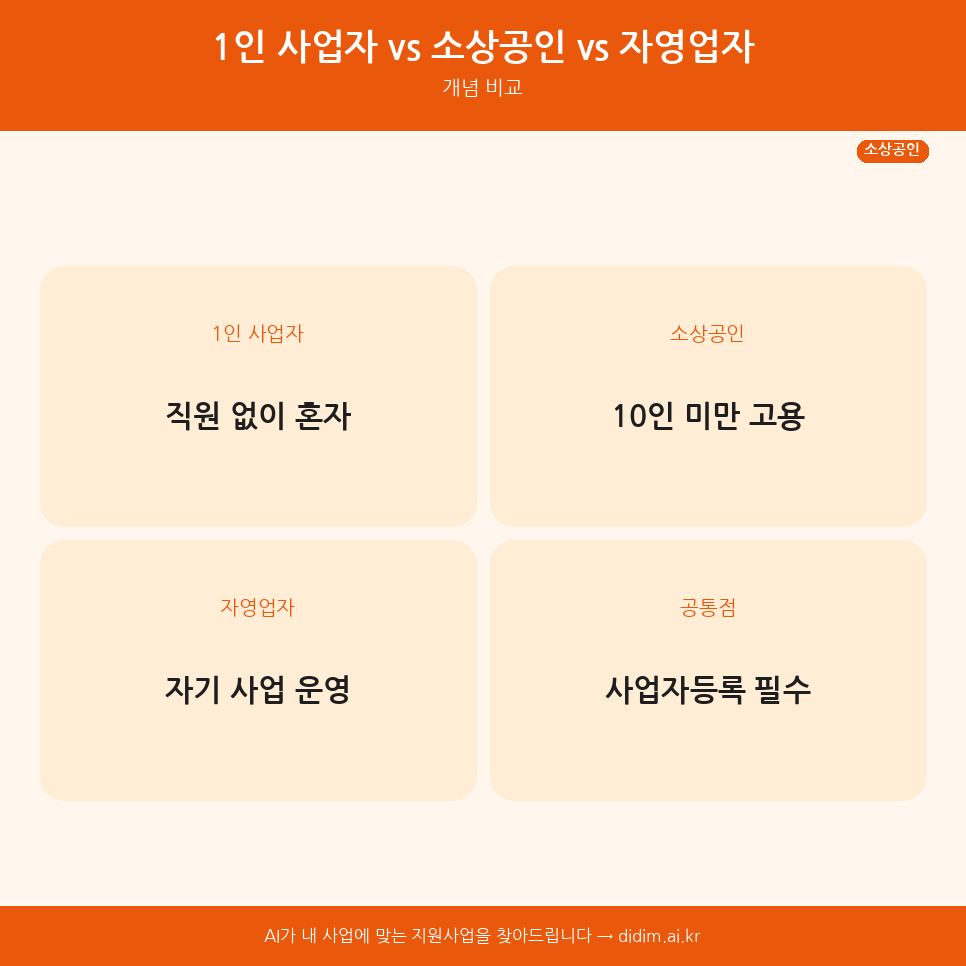 1인 사업자 vs 소상공인 vs 자영업자