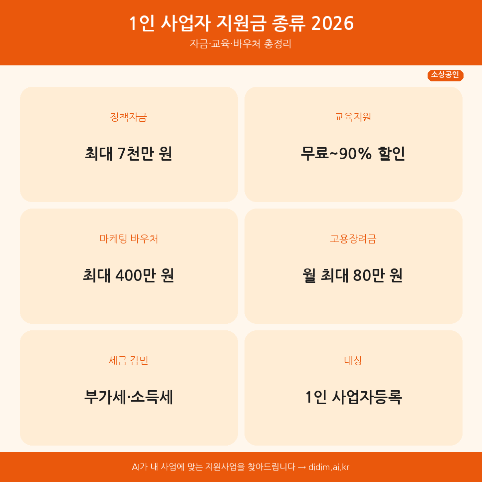 1인 사업자 지원금 종류 2026 | 자금·교육·바우처 총정리