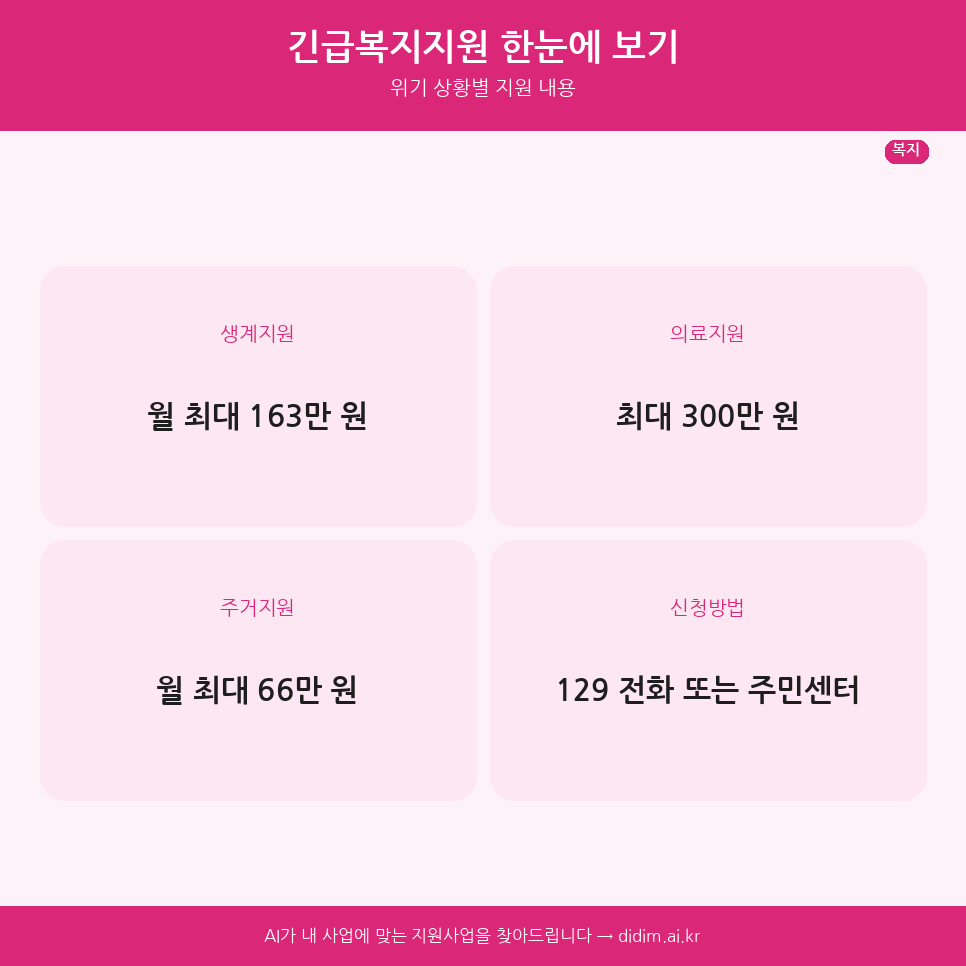 긴급복지지원 신청방법 2026 | 위기 상황 유형·최대 지원금·129 콜센터