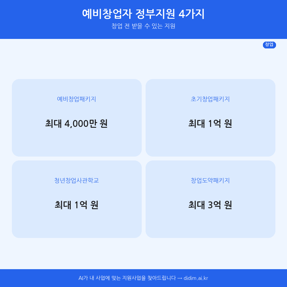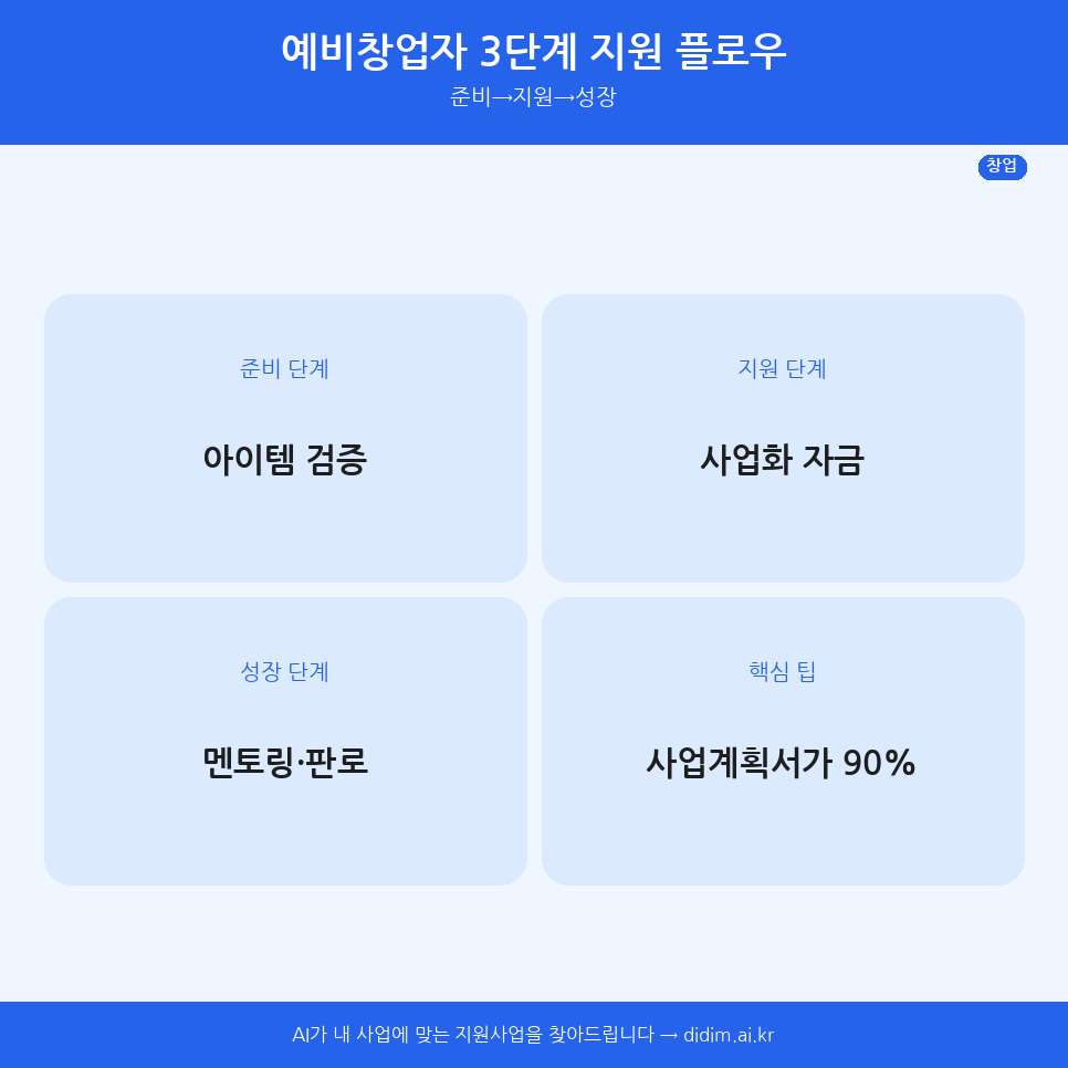 ⚠️ 중요: 예비창업패키지는 2025년 모집을 마쳤으므로, 2026년 신청자는 "초기창업패키지" 또는 "모두의 창업"에 신청해야 합니다.