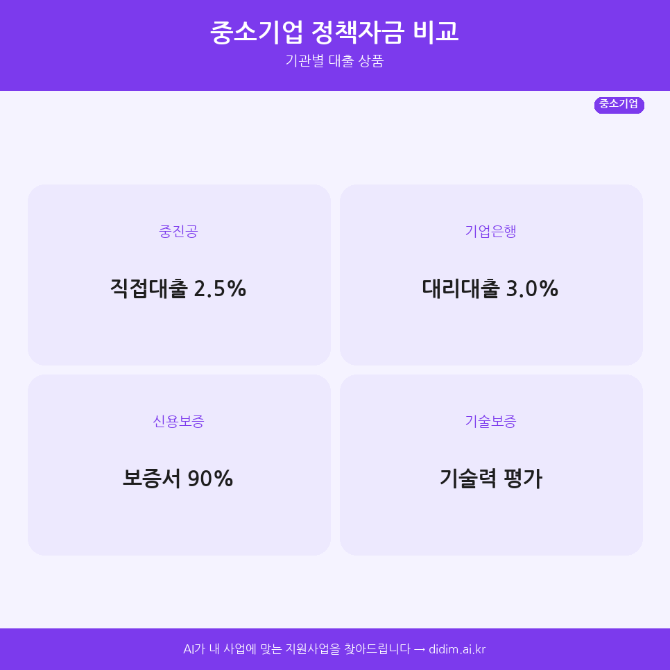 2026년 중소기업 정책자금 완벽 가이드. 중진공·기업은행·신용보증기금 금리 비교, 자격 조건, 신청 방법까지 한눈에 정리했습니다.